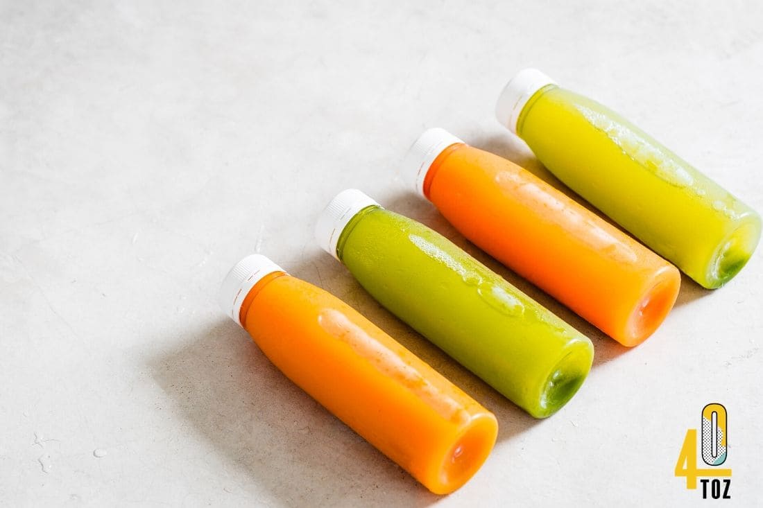 Die Saftfasten Diät beinhaltet lediglich Wasser, Kräutertees, Obstsaft sowie Gemüsebrühe. Diese Flüssigkeiten ersetzen bei der Saftfasten Diät alle Mahlzeiten und werden über den Tag verteilt aufgenommen. Es gibt also kein klassisches Frühstück, Mittag oder Abendbrot. Insgesamt werden bei der Saftfasten Diät etwa drei Liter Flüssigkeit pro Tag konsumiert.